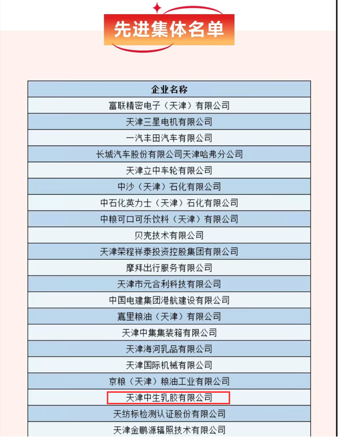 滨海新区人民政府表彰2025年度滨海新区和谐劳动关系构建先进集体,天津中生乳胶有限公司光荣上榜。